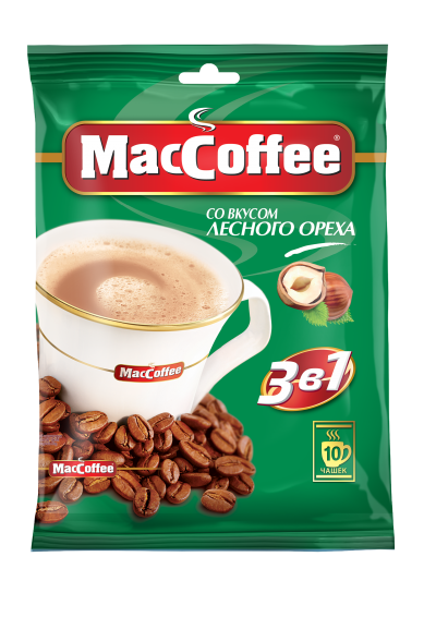 MacCoffee® 3 в 1 со вкусом лесного ореха — божественное сочетание обжаренного лесного ореха, ароматных кофейных зёрен, сливок и сахара.